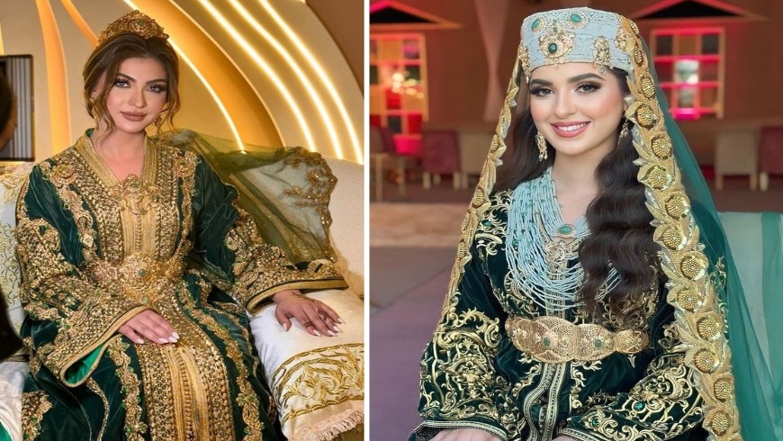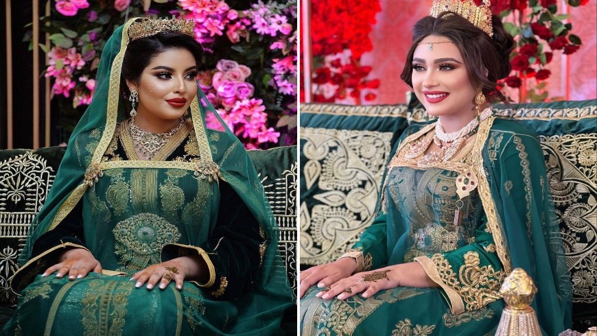 قفطان العروسة الأخضر يسطع بالأناقة والجمال في ليلة الحناء