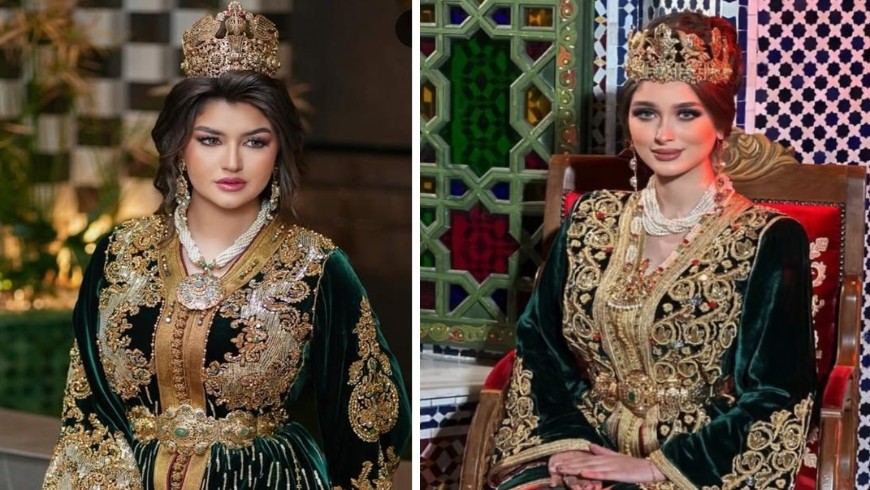قفطان العروسة الأخضر وتفاصيل التصميم الفريدة: